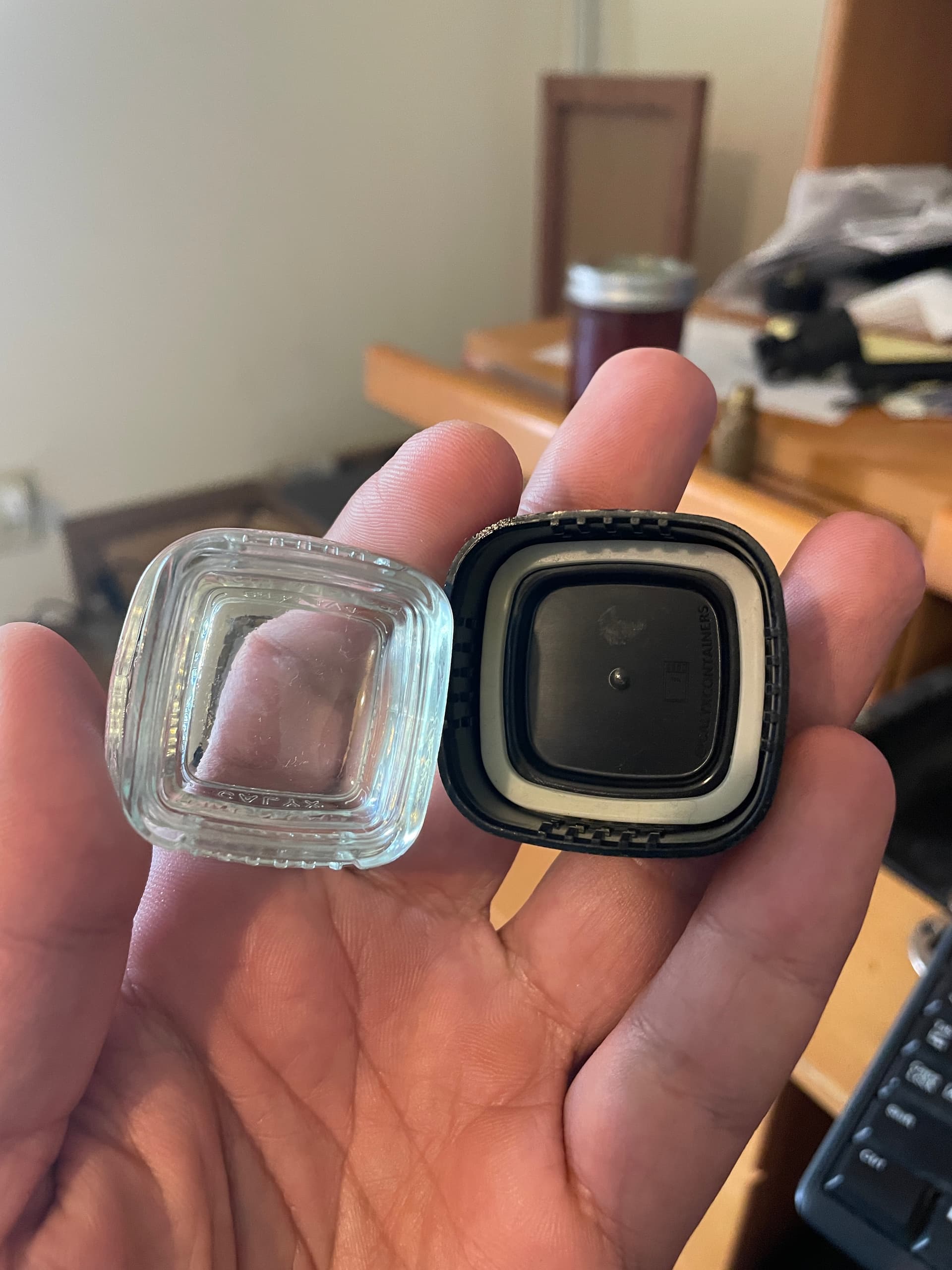 they also make one with a bowl-shaped FEP seal. It goes over top of the whole opening like an induction seal, but it’s pressure sealed by the lid. If your container gets inverted, the FEP seal catches all the extract and nothing is lost in the process