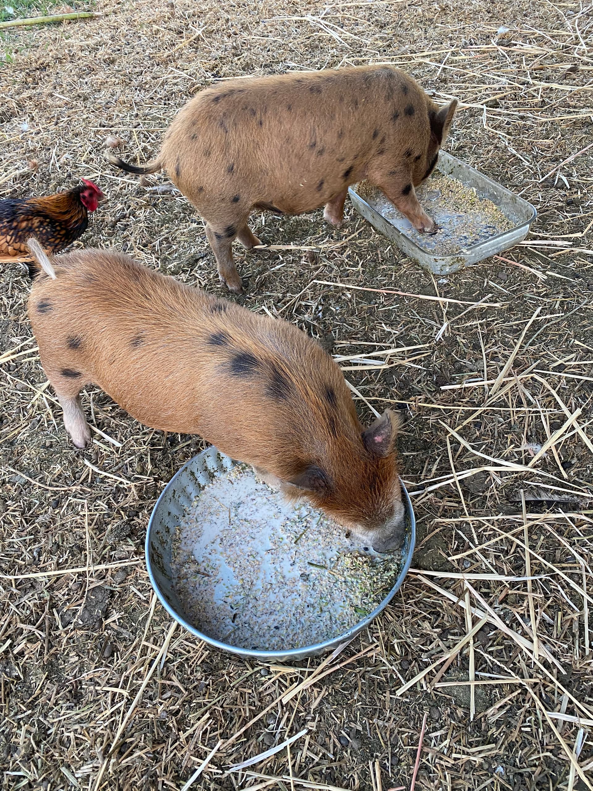 Just traded 15 chickens (meat birds, butchered and ready to eat) for 4 castrated male kune kune piglets, kune kune meat here we comeā¦